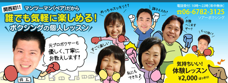ソアーボクシングでは東大阪市と本町にプライベートジムをかまえ、独自のノウハウでボクシングのレッスンをさせて頂いております。